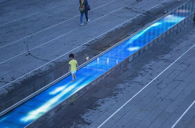 水本無形,它的物理特性讓它能輕易地跟隨容器而呈現(xiàn)不同的面貌。獨(dú)特的延展性使得水能呈現(xiàn)無以計(jì)數(shù)的不同效果。燈光的布置,介質(zhì)的紋理,顏色和動(dòng)態(tài)都能給水帶來無窮的變化。
